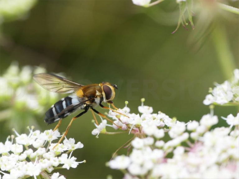 Header Foto: Een vrouwtje van de doorzichtig-gele melkzweefvlieg, een soort die uit ons land verdwenen is en in heel West-Europa sterk achteruitgaat (Bron: Menno Reemer)