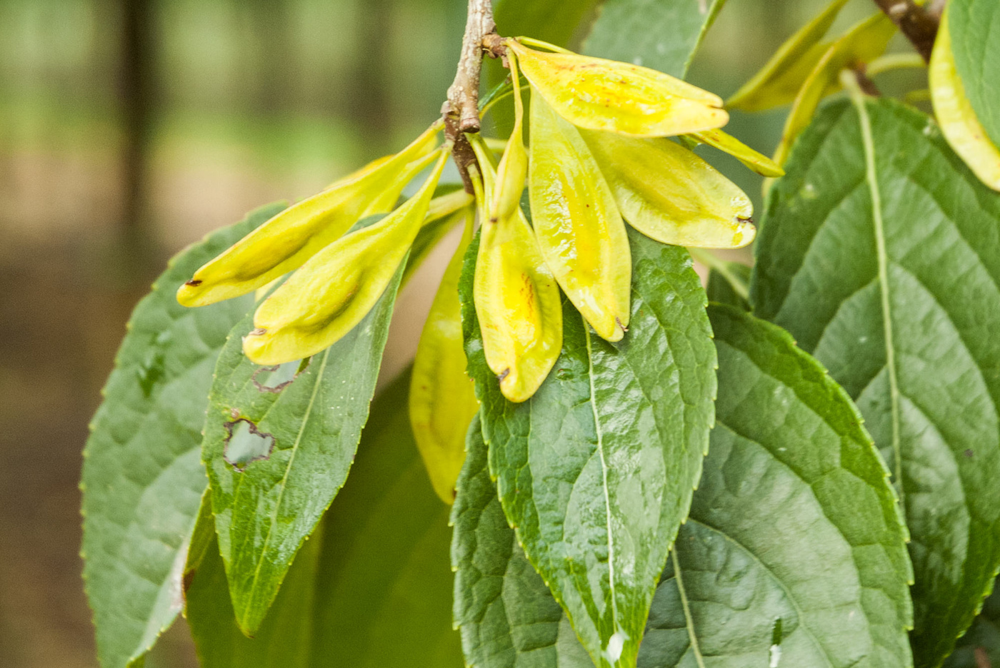 - Vruchten: plat gevleugeld, nootje circa 3,5 cm