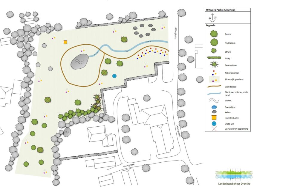 doorn en een aantal bewoners van Drouwen het initiatief genomen om het terreintje te verfraaien. Samen met Dorpsbelangen Drouwen, Bronneger en Bronnegerveen, de gemeente Borger-Odoorn en Landschapsbeheer Drenthe is een plan opgesteld. Aanwonenden en andere inwoners van het dorp waren hierbij vanaf het begin betrokken.