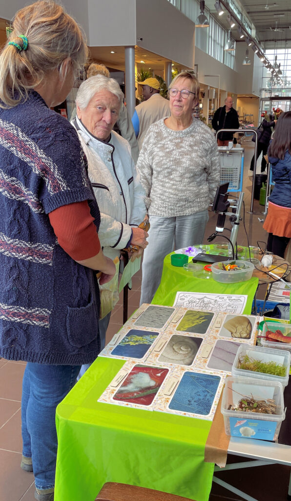 We deden ook dit jaar weer mee aan de microscopiedag. Op zaterdag 8 november stond in de hal van Albert Heijn onze microscoop opgesteld. Onze enthousiaste vrijwilligers Alda, Annie en Desiree hadden allerlei kleine dingen uit de natuur verzameld, die door de microscoop sterk vergroot konden worden bekeken. Kinderen konden zelf ook iets kleins meenemen om te bekijken. Ze waren heel enthousiast, voor hen ging nieuwe wereld open.