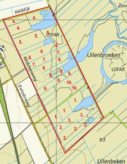 De percelen van Lofar, die we vanaf 2 juli dit jaar weer bezochten zijn in het plaatje afgebeeld.