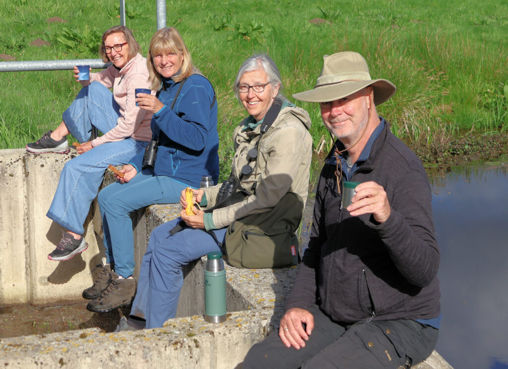 Wat ook prachtig was, was het weer. Af en toe een wolkje voor de zon, maar verder droog en een prima temperatuur. Na twee uur lopen en spotten werd er koffie, thee, koekjes en repen genuttigd bij een kleine “waterlating”. Deze werd dankbaar gebruikt als bankje. Na ongeveer een uur kwamen we uiteindelijk weer terug bij de auto. We waren het erover eens dat het een geslaagde ochtend was.