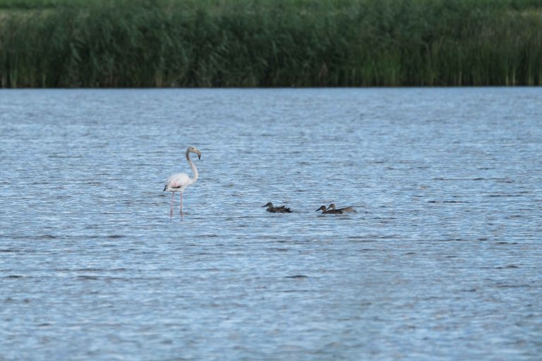 In juli 2020 was bijvoorbeeld bovenstaande flamingo in het Lofargebied, een zeldzame soort! (Foto: ©LenieDoornkamp)