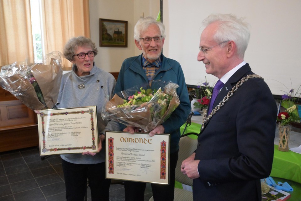 Arno en Marry komt veel lof toe en die werd hen dan ook toegezwaaid tijdens een feestelijke bijeenkomst in het Podiumkerkje op maandag 29 april 2024.