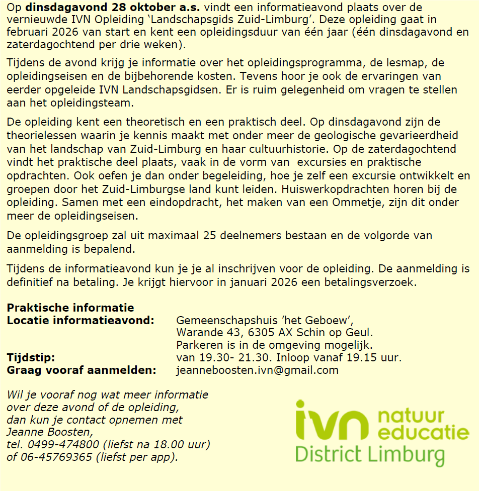 Voorlichtingsavond Opleiding Landschapsgids Zuid-Limburg 2026 di 28 okt