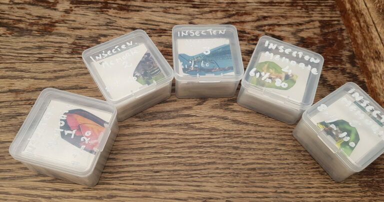 Ga op zoek in oude tijdschriften naar mooie natuurplaatjes en maar er een memoriespel mee, of eigenlijk een puzzelmemoriespel. Je gaat in het spel op zoek naar 2 kaartjes die samen 1 afbeelding vormen. Je kunt het spel daarom blind, maar ook open spelen. We leggen je graag uit hoe je het spel maakt en speelt.