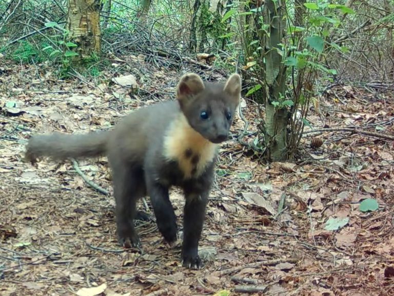 Een van de onderzoeken die de Inventarisatiewerkgroep van IVN De Bilt jaarlijks doet, is het populatieonderzoek naar boommarters in de wijde omgeving rond De Bilt. Dit onder de vlag van de Werkgroep Boommarters Nederland (WBN) van de Zoogdiervereniging. Vanaf 2004 wordt gezocht naar nestbomen en vanaf 2016 wordt gewerkt met wildcamera’s. Boommarters hebben een witte vlek bij de keel, die voor iedere boommarter uniek van vorm is: het befpatroon. In augustus is het tijd om de befpatronen te tekenen van jonge boommarters en iedere boommarter een naam te geven in de hoop deze nog jaren te kunnen volgen. Zoals bijvoorbeeld bij deze boommarter.
