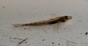 En er was nog een klein visje wat we niet gelijk thuis konden brengen (zie foto hierna). In eerste instantie werd gedacht aan een 10 doornig stekelbaarsje. Dit was ook voor 99% zeker volgens waarneming.nl. Echter door een expert werd het visje gedetermineerd als een marmergrondel. Ook een invasieve soort die een bedreiging vormt voor inlandse waterfauna. Gelukkig reageert de natuur doordat zowel de kreeften als de visjes op het menu staan van diverse vogels, zoals de reiger en de meerkoet.
