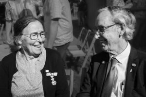 Na het opspelden van het lintje door de locoburgemeester las IVN-er George van Och een zelfgemaakt gedicht voor in Bergeijks dialect. Hij had dat gedicht speciaal voor Leen gemaakt. Karel Franken speelde op zijn accordeon en zong een eigen versie van het lied ‘dat is geen kunst’, waarmee het publiek vol enthousiasme meezong. Na de huldiging van Leen en Johan werd er luid geproost en gezongen! Er was voor iedereen een hapje en een drankje en in de prachtige Natuurtuin was het heerlijk toeven. Er waren foto’s uit vervlogen tijden opgehangen in ontmoetingscentrum De Wingerd. Zestig jaar IVN werd daarop mooi in beeld gebracht.