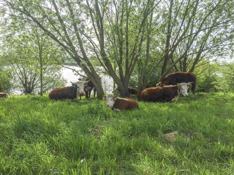 Op zondag 27 april kwamen maar liefst 45 wandelaars naar boerderij de Wijnhoverhof in Blitterswijck. Om te wandelen in het Maaspark. En kennis te maken met de kudde grazers van de familie Camps. Onder een volle zon genoten we van de prachtige natuur in de oude Maasarm. En gelukkig zagen we een aantal Herefords runderen die ingezet worden om dit gebied te beheren.