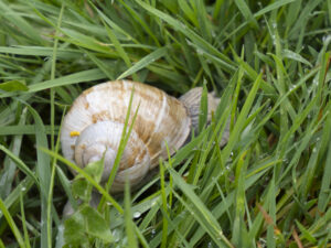 Daarna weer verder en naar de rivier de Rur gelopen. Het pad ernaartoe lag vol met slakken, de gewone Wijngaardslak. Nou ja, gewoon.