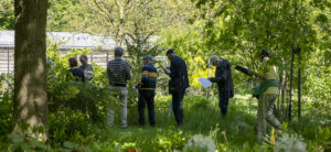Op facebookpagina van IVN De Maasdorpen verschijnt elke maand een verslagje van de belevenissen van Piet en Bea in hun tuin. Piet is zelf aan het inventariseren hoeveel soorten er in hun tuin voorkomen. Alles wordt geteld, planten, bomen, insecten, beestjes. Piet zelf was al tot 900 soorten gekomen. De leden van de plantenwerkgroep kregen dan ook allemaal een streeplijst in handen om te kijken welke planten en bomen op naam konden worden gebracht. Het was wel leuk, dat er 7 nieuwe planten en 7 nieuwe bomen op naam werden gebracht. Dit jaar zal de 1000 soorten zeker gehaald worden Piet. De tuin is een juweeltje waar je rust en ruimte vindt en waar op elke meter wel iets nieuws te ontdekken valt. Van siertuin, moestuin, kruidentuin, vijver, kasje, bomentuin tot gezellige kippen met haan. In de fruitbomen hangen potjes met stro voor de oorwormen, nestkastjes voor de vogels in het bosje, bijenkasten in een hoekje waar stevig gevlogen werd. Eekhoorntjes komen geregeld naar het notenbuffet. Je kunt aan alles zien dat Piet en Bea echte natuurliefhebbers zijn.