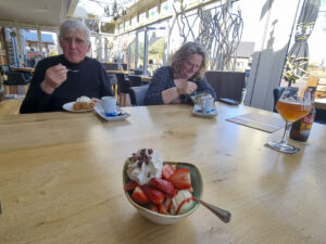 We hebben een leuke afwisselende wandeling gemaakt van ca. 5 km, waarna de verfrissing bij Roelanzia zeer welkom was.