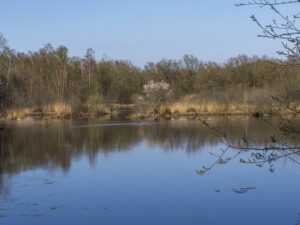 Een klein gebied waar je op sommige plekken de turfputten nog kunt zien. Verschillende vennetjes lagen lekker in het zonnetje. Een late Watersnip voelde zich bekeken en vloog op onder luid skrètsj skrètsj geroep. Het was er heerlijk rustig.