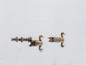 Er werd aardig gebaltst en gebroed door de Futen, de Zwaan zat op haar nest, de Nijlganzen zwommen rustig weg met hun schattige pulletjes van een paar dagen oud, en de Koninkpaarden kwamen statig voorbij met een veulentje in hun midden.