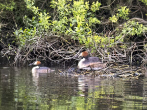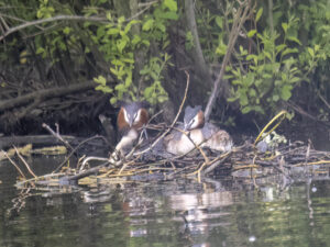 Er werd aardig gebaltst en gebroed door de Futen, de Zwaan zat op haar nest, de Nijlganzen zwommen rustig weg met hun schattige pulletjes van een paar dagen oud, en de Koninkpaarden kwamen statig voorbij met een veulentje in hun midden.