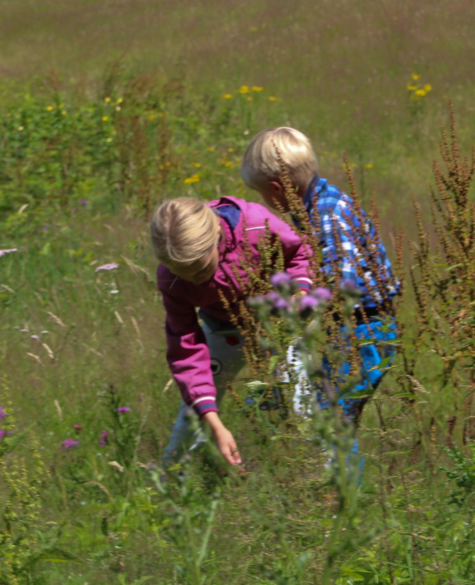Dat de Foodwalk voor kinderen bedoeld was, was geen probleem. De 5 kinderen kregen hulp van 12 volwassenen bij het zoeken naar eetbare planten. De IVN-gidsen vertelden welke planten eetbaar (en lekker) waren en waar je ze voor zou kunnen gebruiken (EHBO werd ook meteen toegepast bij brandnetelblessure). De mandjes die de deelnemers kregen, werden enthousiast gevuld met Brandnetel, Zevenblad, Paardenbloemen, Hondsdraf, Dovenetel en Look zonder look. Natuurlijk was er ook aandacht voor de mooie omgeving en de zeldzame orchideeën die we tegen kwamen, werden dan ook aandachtig bekeken, maar verder met rust gelaten.