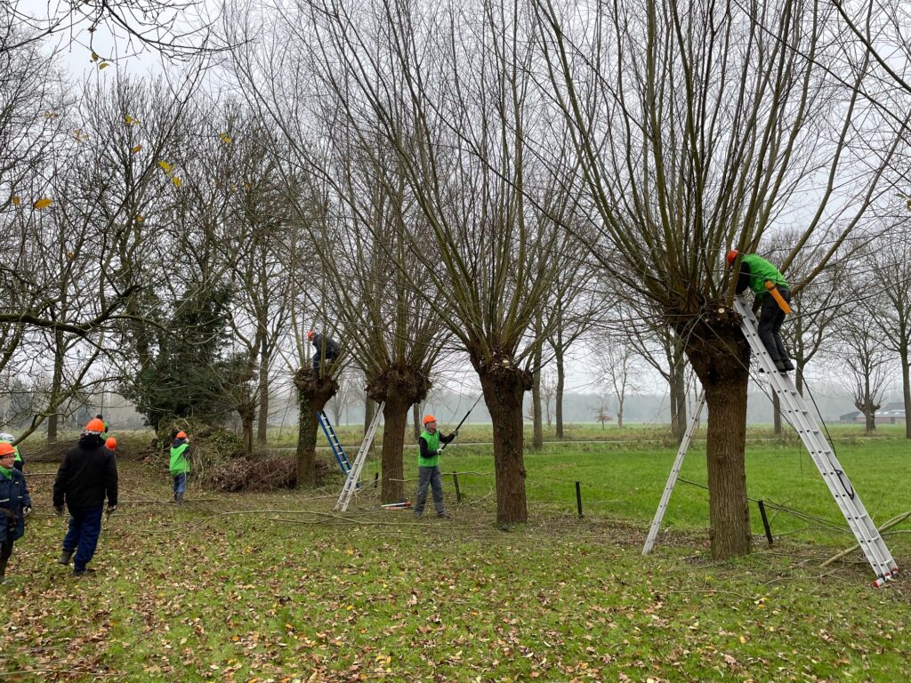 Toch is één werkje is met afstand favoriet: wilgen knotten. Staan de wilgenbomen op het programma dan is de opkomst pas echt massaal. Uit Doetinchem en wijde omgeving komen soms wel 25 mannen en vrouwen opdraven. Hoewel, gezien de leeftijd van een aantal van hen valt het met dat hardlopen wel mee. Ieder heeft zijn eigen tempo. Voor de een ligt dat hoog, en betekent wilgenknotten een gratis work-out in de natuur. Voor de ander is het voorzichtig aan en vooral niét die wankele ladder opklimmen.