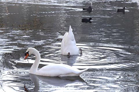 Grondelen heet het met een mooi woord. Meer watervogels doen dit. Eenden kun je zelfs indelen in grondeleenden en duikeenden. Grondelen doe je aan de rand van het water – en duiken daar waar het dieper is. Overigens zijn zwanen niet het nauwst verwant aan grondeleenden. Ze staan dichter bij ganzen. Je zou een zwaan kunnen zien als een grote gans, met extra lange nek en kortere poten.