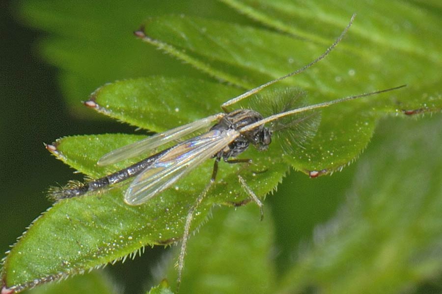 Het zijn dansmuggen. Onophoudelijke zigzaggen de kleine muggen op en neer en heen en weer in de lucht. Alle kanten gaat het op, maar de wolk blijft op dezelfde plek hangen, boven het gras. Het doet me even denken aan een voorjaarsdans, maar dansmuggen horen toch echt bij de winter. Wintermuggen is dan ook een andere naam voor ze. Vooral in de eerste maanden van het nieuwe jaar voeren ze hun dans uit.