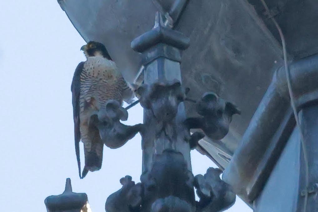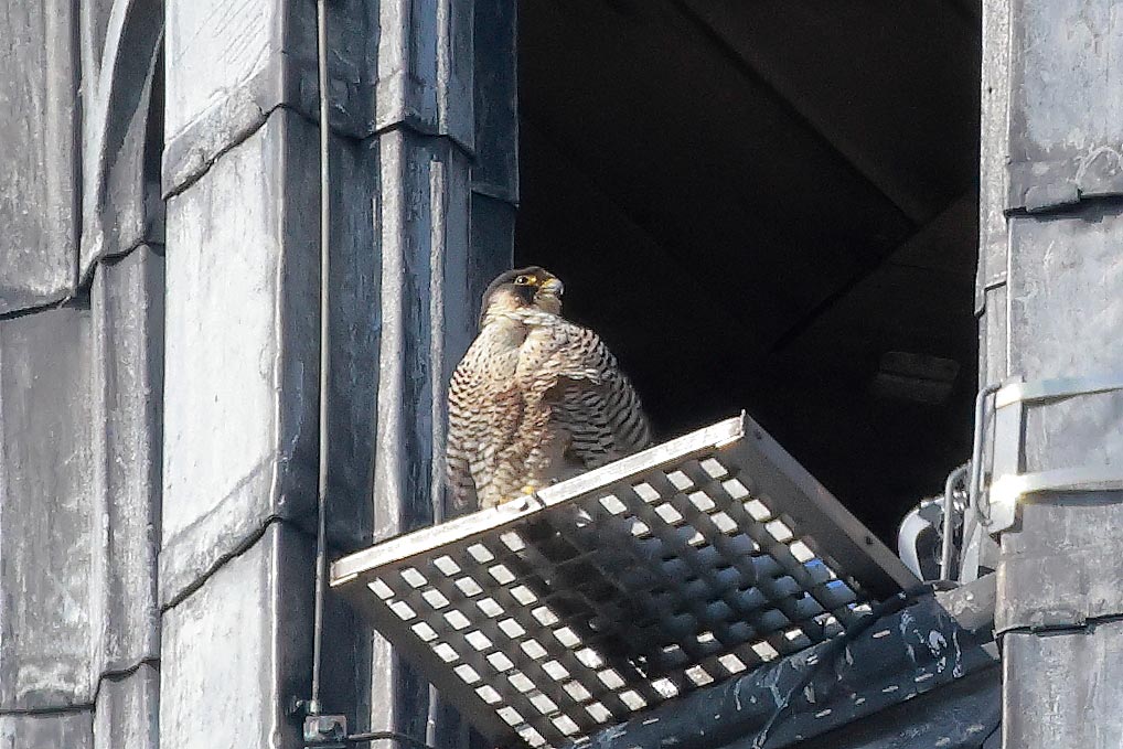 De slechtvalk hoog in de kerktoren van de Doesburgse Martinikerk. (foto’s: Michel van den Bergh)