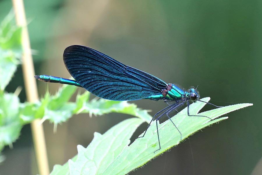 Op een rietstengel langs de Oude IJssel rust een prachtige groen met blauwe libelle. Een grote donkerblauwe vlek siert zijn vleugels. Hierdoor goed te herkennen als mannetje weidebeekjuffer. Deze juffer is één van de twee beekjuffers van ons land. Is de weidebeekjuffer algemeen voorkomend, voor de zeldzame bosbeekjuffer moet je naar Winterswijk, of het verre zuiden van ons land. Maar zeldzame libelle zijn is helemaal niet leuk, werd me duidelijk.
