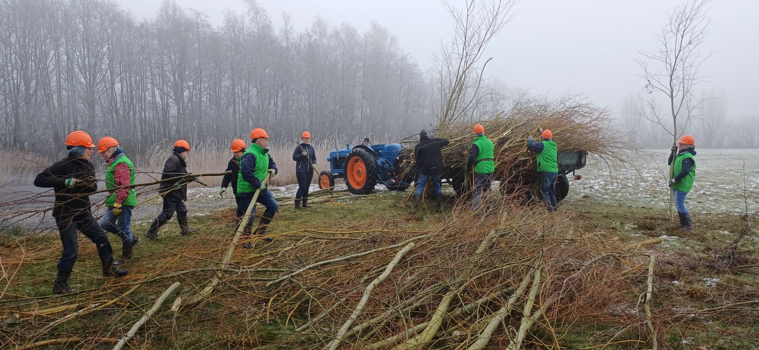 Ongeveer twintig werkgroepleden staan om 09.00 uur klaar om de wilgen te gaan knotten.