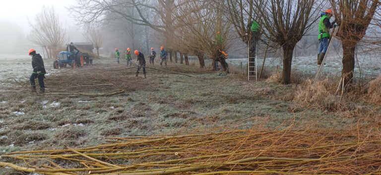 Ongeveer twintig werkgroepleden staan om 09.00 uur klaar om de wilgen te gaan knotten.