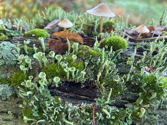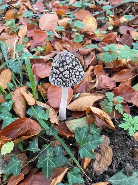 We zijn in twee ongeveer gelijke groepen in tegengestelde richting op pad gegaan, als het goed is komen we elkaar onderweg weer tegen. Het krioelt overal waar je kijkt van de paddenstoelen. We besteden extra aandacht aan de exemplaren op dood hout om nog maar eens te benadrukken hoe belangrijk dat dode hout is voor de biodiversiteit. De vrienden, de vijanden en de vuilnismannen ze komen allemaal aan bod.