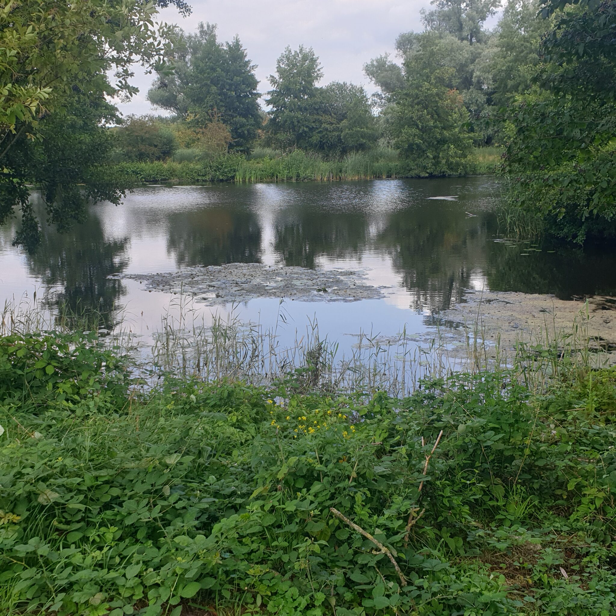 Op deze zonnige zondagochtend 9.00uur zijn alle 28 deelnemers aanwezig voor de 3 uur durende tocht door dit prachtige gebied tegen de grens van Duitsland tussen Lobith en Elten. Met vier gidsen en twee gidsen in opleiding maken we drie groepen en gaan het gebied in. Het maakt deel uit van het Rijnstrangengebied en is niet vrij toegankelijk. Met de particuliere eigenaar en met SBB is de toegang voor deze excursie geregeld en een maximum van 30 personen afgesproken. Dat aantal had zich al snel via de website aangemeld waardoor geen advertentie meer is geplaatst. Vanaf de start over het particuliere terrein heb je zicht op de Elterberg. Die berg vormt een prachtige illustratie voor het verhaal over het ontstaan van de stuwwallen in dit gebied in de voorlaatste ijstijd en daarna de doorbraak door de Rijn, waarmee de Gelderse Poort ontstond. In dit gebied is volop klei afgegraven voor de baksteenindustrie, in die kleiputten staat nu water en heeft de nodige natuur zich kunnen ontwikkelen. Naast diverse andere boomsoorten en planten zijn er uiteraard veel wilgen. De bevers doen zich daar volop aan te goed. Overal zien we dan ook vraatsporen en beverwissels. Ook veel soorten planten komen we tegen zoals gele plomp, zwanenbloem, watermunt, kikkerbeet, blaasjeskruid, watermunt, wilde peen, marjolein, avondkoekoeksbloem, blaassilene, kruldistel etc.