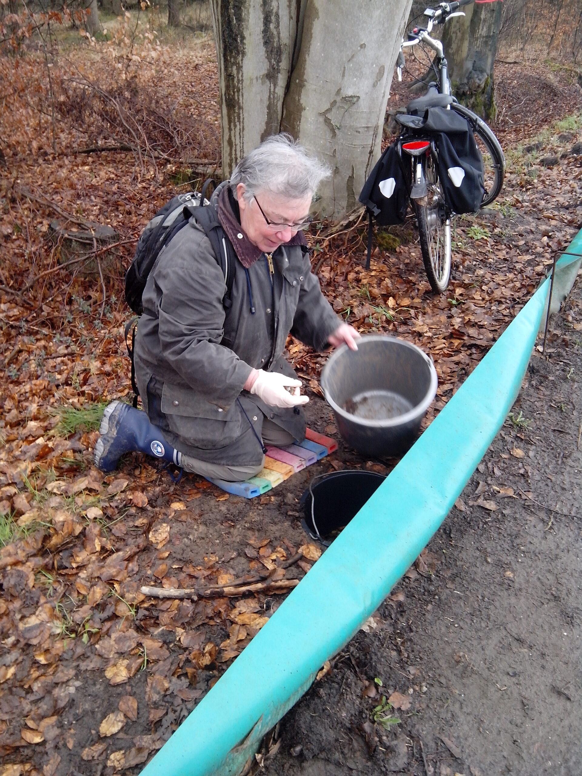Wie komt ons helpen bij het rapen van amfibieën uit de 15 ingegraven emmers langs een plastic scherm van 100 meter lang?