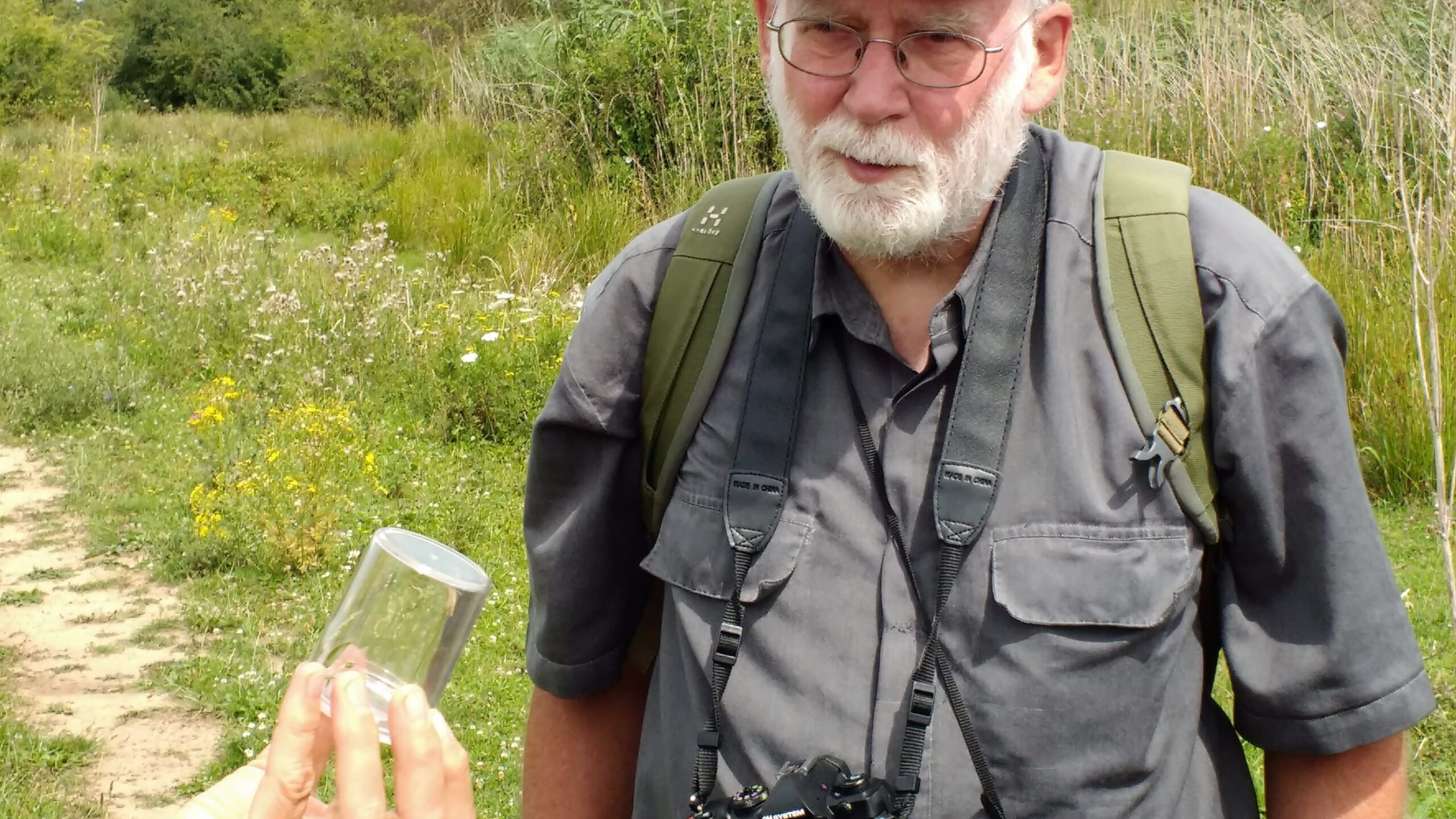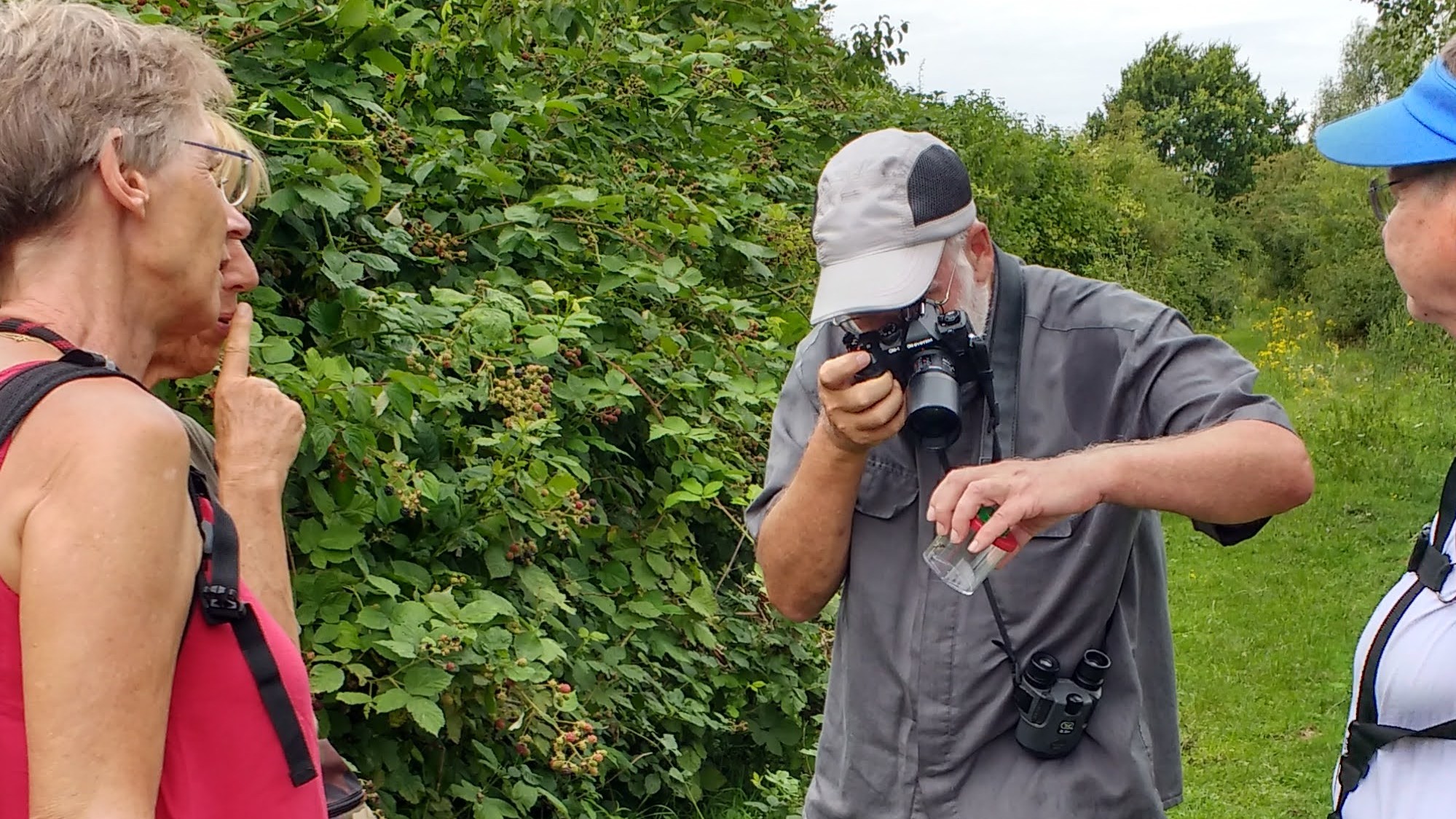 Of de weersverwachting of andere activiteiten en evenementen (Zwarte Cross) er debet aan waren, er kwamen slechts 5 deelnemers opdagen. Gelukkig wel zeer enthousiaste dames, die met de uitgedeelde loeppotjes zelf meteen het ene na het andere beestje vingen. Deze werden uitgebreid bestudeerd – zo mogelijk – op naam gebracht en gefotografeerd. Niet alles werd gevangen maar ook gespot, met of zonder (vlinder)kijkertje.