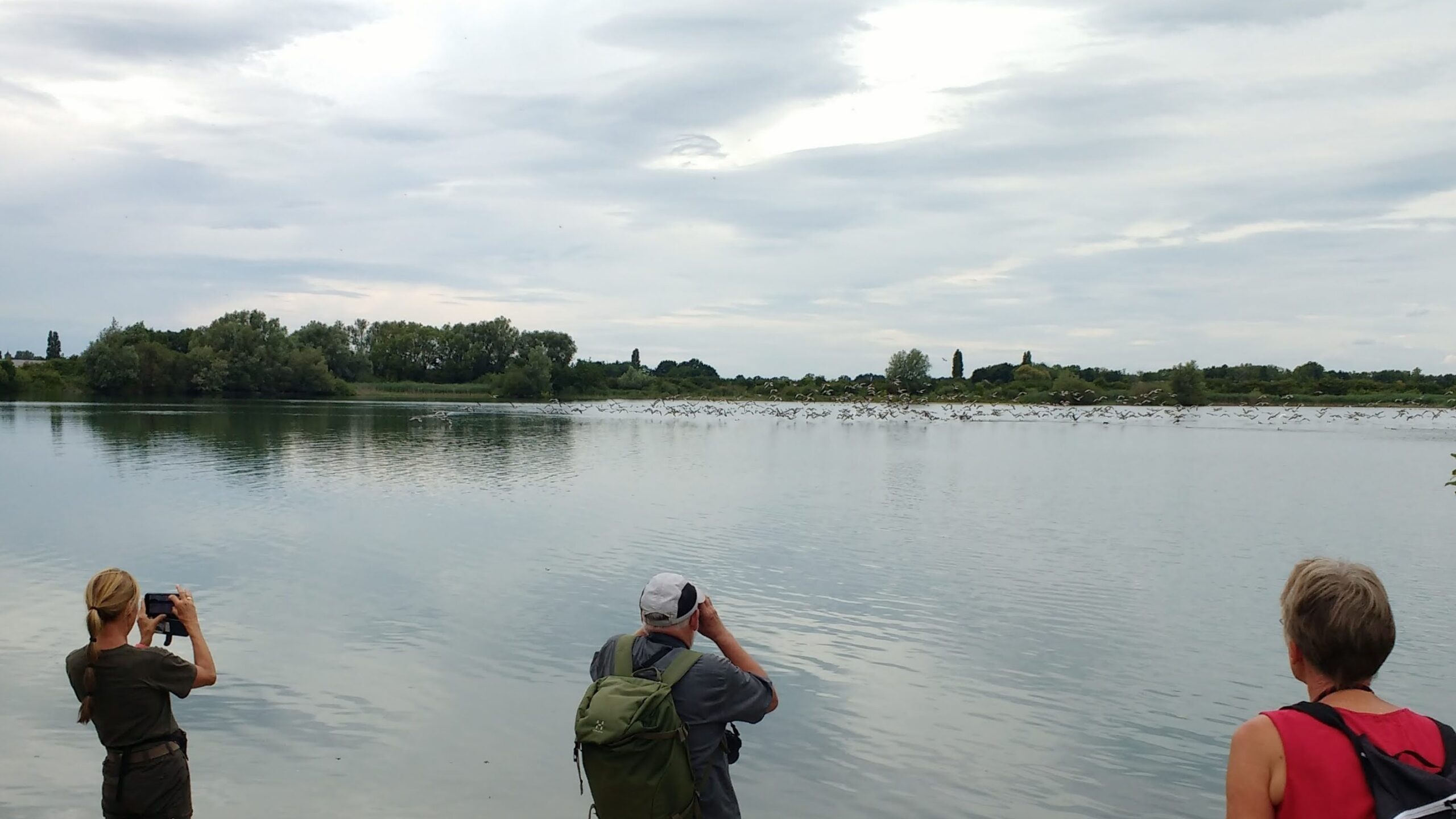 Onderweg kregen we nog gezelschap van een familie staartmeesjes en bij het slikstrandje ging een grote groep ganzen (meest grauwe) op de vleugels, wat ook een spectaculair gezicht en gehoor was.