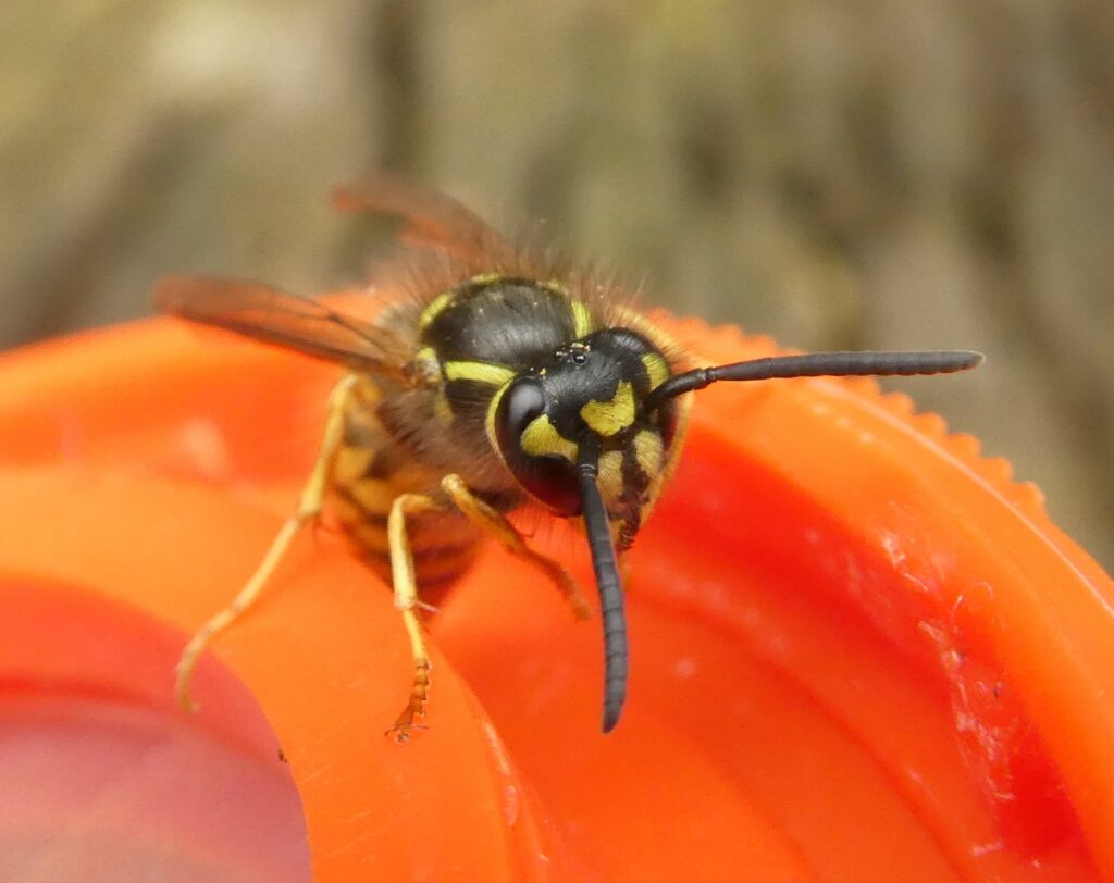 Zaterdagmiddag 28 september, het is fris, er zijn felle buien, maar de zon breekt net weer door. We gaan op zoek naar kriebelbeestjes in het park. Zes kinderen en vijf volwassenen. We starten vanuit de Natuurboerderij De Groene Knoop. Na de introductie vertrekt Peter naar de verjaardag van zijn kleindochter. Jannie en Ina gidsen een rondje door het park op zoek naar bloeiende klimop. Staat die in de zon, dan weten allerlei soorten insecten deze snel te vinden, want de kleine gele bloempjes produceren veel nectar en stuifmeel. Het is een van de laatste drachtplanten in het jaar. We vinden klimop, maar helaas, door de kou en nattigheid zien we weinig insecten: twee wespen, een honingbij en een zweefvlieg.