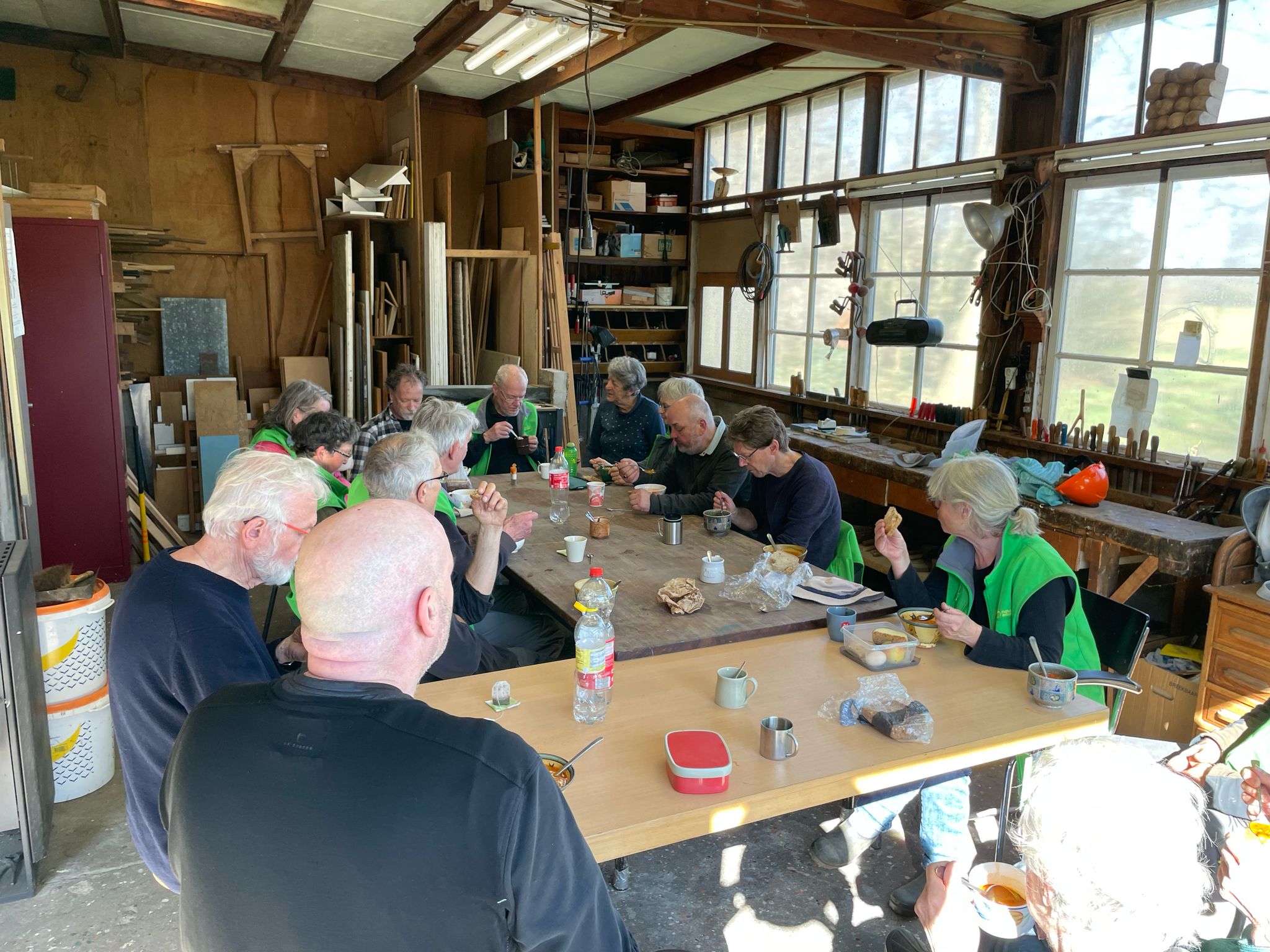 Op zaterdag 8 maart, een warme en zonnige voorjaarsdag, verzamelen zich 16 werkgroepleden op een voor ons nieuwe prachtige plek aan de buitenkant van Bontebrug.