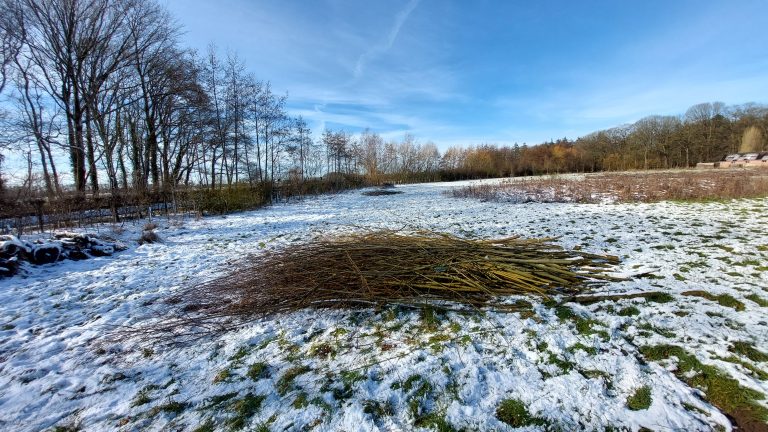 Omdat we eerder klaar waren dan gepland, ging een deel van de werkgroep helpen met het planten van een haag op boerderij Ruimzicht in Halle. Een ander deel kreeg een rondleiding van onze coördinator Ber op zijn (en die van zijn vrouw Friedy) prachtige plek aan de Kersendijk in Westendorp, waar de natuur zich steeds meer ontwikkelt.