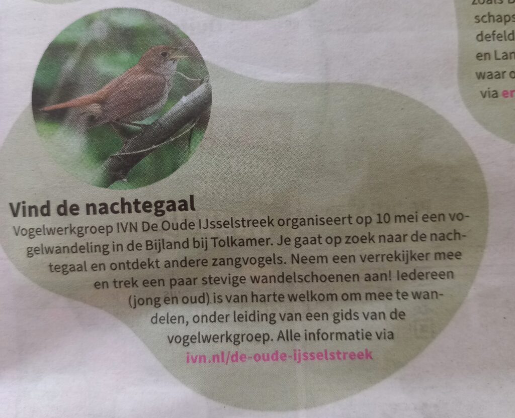 Dit jaar Nachtegalenexcursie op Moederdag!