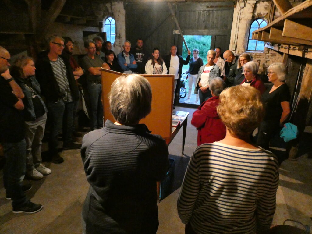Bij terugkeer op de deel kon nog wat foldermateriaal bekeken en meegenomen worden en nog wat vrije giften in het geldbusje gestopt. En zo kwam er een eind aan een leuke avond waarbij drie verschillende soorten vleermuizen werden waargenomen en ook het weer goed meewerkte; droog en niet teveel wind.