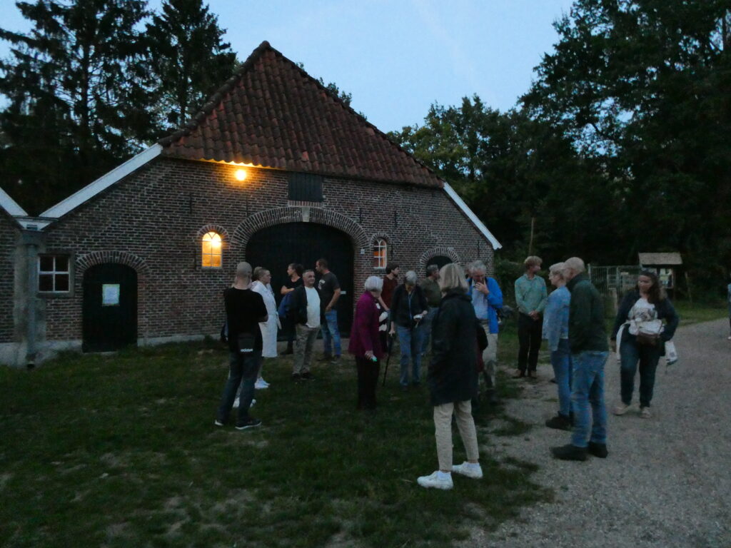 Zo’n 20 deelnemers hadden zich verzameld op de nog haastig schoongemaakte deel in het voormalig boerderijtje. Henriette van der Loo startte met een korte inleiding over vleermuizen en daarna ging de groep op pad. De zon was al onder en dus begon het al aardig donker te worden in het park. Tijd dat de vleermuizen zouden moeten vliegen. We hoorden (via batdetector) en zagen ze (tegen de avondlucht) nog niet gelijk, maar een vrouwtje bosuil liet zich wel goed horen. En even later werd inderdaad de eerste laatvlieger gespot en volgden ook de gewone dwergvleermuizen.