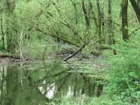 Werk in uitvoering dus, maar wij doken het oostelijk ooibos in dat er sinds de jaren zestig onaangeroerd bij ligt. Een boer was zondagmorgen zijn akker aan het inzaaien en dus moesten wij met de hele groep een alternatieve route nemen. Over ongelijk terrein, over prikkeldraad, door de bloeiende meidoorns en door de sloot. En vervolgens stonden we in het prachtige sprookjesachtige ooibos. Veel pinksterbloemen en bloeiend hondsdraf maar voor de vlinders was het nog te koud. Wel indrukwekkend veel niet-stekende muggen die bij elke stap om je heen dansten.