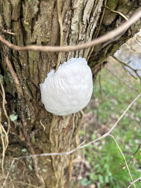 Wij vonden er speenkruid, het maartsviooltje, bosanemonen, gevlekt longkruid. Maar ook de pinksterbloem. Is dat niet een beetje vroeg voor het oranjetipje? Op een meidoornstruik zagen we een voor ons onbekende paddenstoel*. Ook Obsidentify liet het afweten. Behalve de haas hebben we er geen dieren gezien. Maar wel sporen van het ree en de bever.Helaas niet van de otter hoewel we weten dat die hier wel zit. Doordat de wilgen om en om worden geknot komen de insecten er ook niets te kort. In het voorjaar zijn de wilgen een belangrijke leverancier van de eerste nectar.