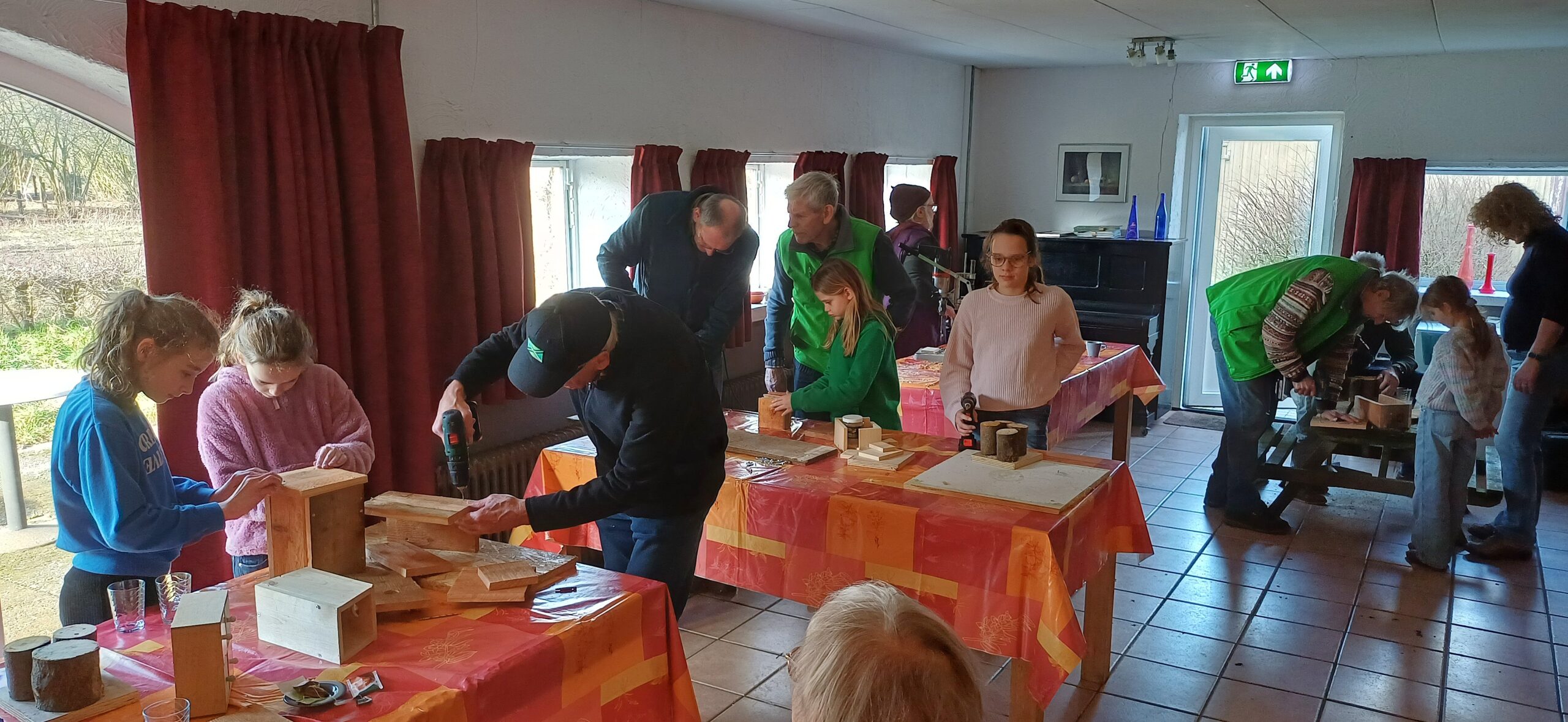 Met hulp van vier natuurgidsen uit regiowerkgroep ’Rondom Strang & Iessel’ kon er worden geboord, gezaagd, geschroefd, getimmerd en gepraat. Ouders en grootouders hielpen van harte mee met de activiteit. Sommige kinderen konden al omgaan met gereedschap en voor anderen was het (nog) een uitdaging. Voor limonade, koffie of thee en iets lekkers was er waardering, maar de bezige bijen namen er niet veel tijd voor.