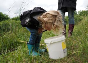 En ja hoor, daar stopte een auto en daar stapte een moeder met kind uit. De laarzen aan en scheppen maar! Ze bleken vorig jaar ook al meegedaan te hebben en waren toen zo enthousiast geraakt, dat ze de slechte weersverwachting maar voor lief hadden genomen. Er moest en zou ‘gevist’ worden.