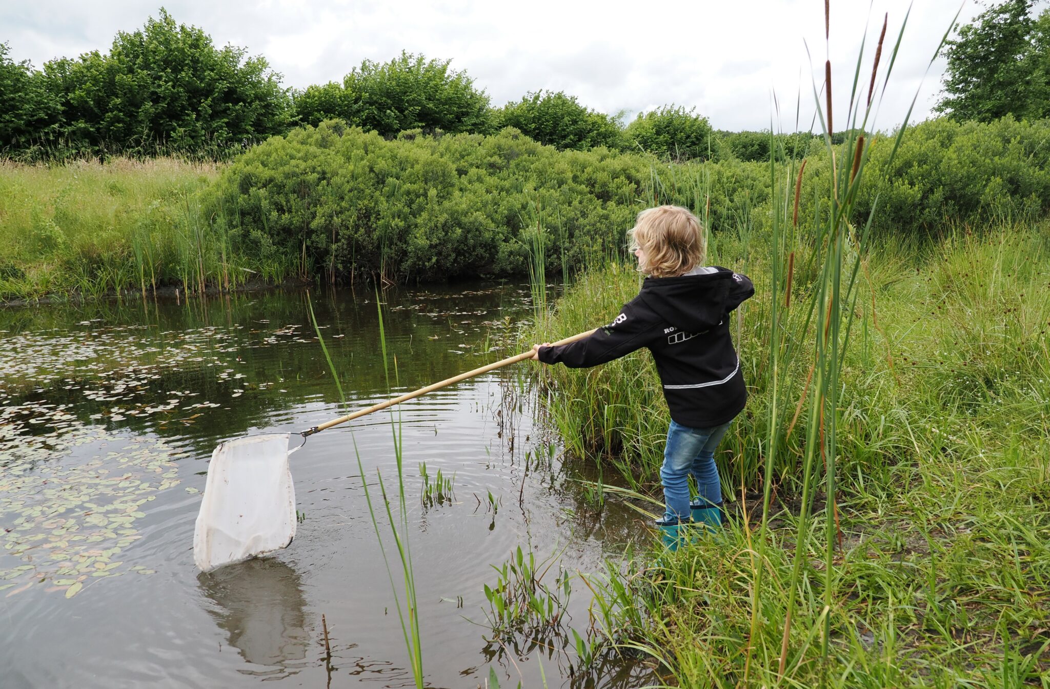 En ja hoor, daar stopte een auto en daar stapte een moeder met kind uit. De laarzen aan en scheppen maar! Ze bleken vorig jaar ook al meegedaan te hebben en waren toen zo enthousiast geraakt, dat ze de slechte weersverwachting maar voor lief hadden genomen. Er moest en zou ‘gevist’ worden.