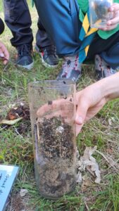 De andere groep ging speuren naar bodemleven. Gewapend met een eetlepel en vergrootglazen, onder begeleiding van de bodemdeskundige Marij naar bodemleven zoeken. Alles werd tot op de bodem uitgezocht.