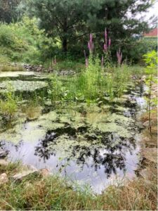 Onze wens om er een poel te maken, want dieren zoeken vaak water, kwam een paar jaar geleden in vervulling. Er kwam veel leven in, zelfs de vinpootsalamander hebben we mogen spotten. Toen er problemen waren met de poel is een nieuwe poel gerealiseerd. Intussen zijn de poelen beide in goede staat.Om de amfibieën tegemoet te komen en ook vanwege de natuurlijke uitstraling hebben we later met hulp van het IKL een stapelmuur gebouwd.