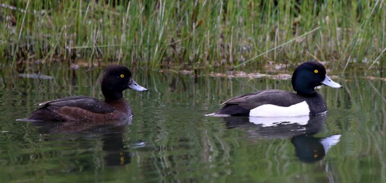 Dit jaar zag ik voor het eerst kuifeenden in mijn vijver. Dat was heel bijzonder. Eerder zag ik ze alleen veel verderop. In de weilanden soms en grote groepen in de Kromme Mijdrecht.