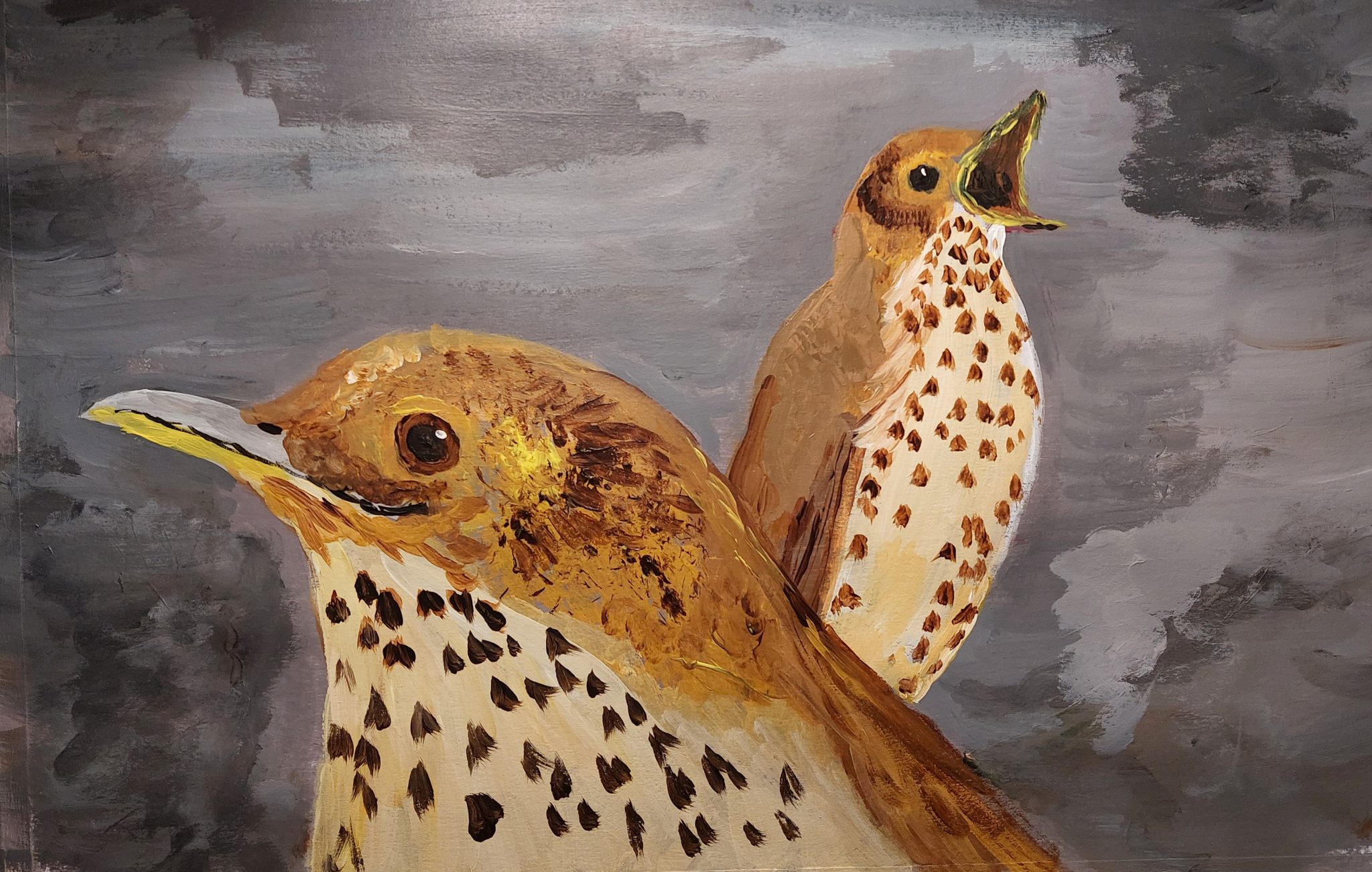 Mensen zingen vaak omdat ze dat leuk vinden, maar voor vogels is het van levensbelang. Een beetje volume is dan mooi meegenomen. Zanglijsters hebben een luide stem en door al vroeg te beginnen vallen ze nóg beter op. Hun zang is eenvoudig te herkennen, niet zo melodieus als van neef merel, de zanglijster is meer een roeptoeter, die alles wat hij roept ook nog eens herhaalt, meestal drie keer. Vrij vertaald roept hij: “Ik ben een mooi mannetje! Ik ben een mooi mannetje! Ik ben een mooi mannetje! Ik zoek een leuk vrouwtje! Ik zoek een leuk vrouwtje! Ik zoek een leuk vrouwtje! Ik ben er klaar voor! jij ook!? Ik ben er klaar voor! jij ook!? Ik ben er klaar voor! jij ook!?”