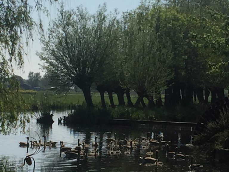 In de week daarna komen er steeds meer families. Nu, begin mei, verschijnen er nog steeds ganzenstellen met piepjonge pullen van een dag oud. Ontroerend klein. De jongen van begin april zijn al bijna even groot als hun ouders. Ganzen groeien snel.