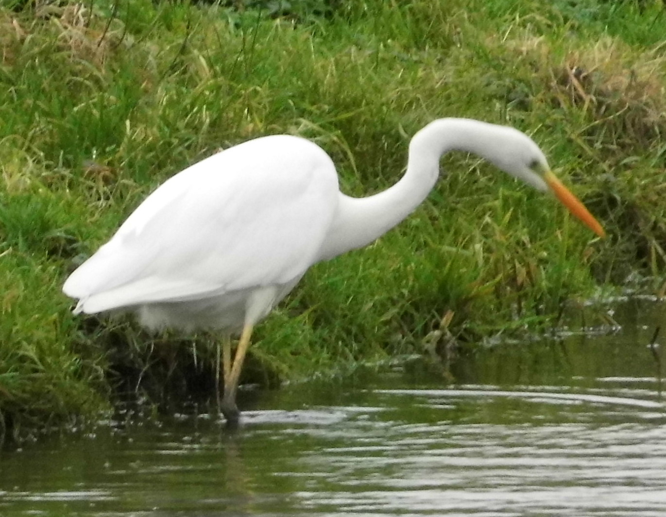 De laatste tijd zien we steeds vaker grote zilverreigers met langzame weloverwogen stappen door de weilanden schrijden. Met name in de herfst en de winter. In oude vogelgidsen worden ze omschreven als ‘zeer zeldzaam’. Werd er één gesignaleerd, dan kwamen vogelaars van heinde en verre, om die aan hun waarnemingslijstje toe te voegen. Door betere leefomstandigheden in Nederland is een instroom van grote zilverreigers vanuit Zuid-Oost Europa op gang gekomen. Je kunt deze slanke, sneeuwwitte verschijning aantreffen in slootrijke weilanden en aan de oevers van plassen. Roerloos, de gele snavel in de aanslag, loeren ze op prooien zoals visjes, kikkers, muizen, mollen en sinds kort ook de Amerikaanse rivierkreeft. We weten dit omdat we in hun braakballen onverteerbare voedselresten terug vonden zoals mollenharen, muizenschedeltjes, kreeftscharen enz. De prooien worden met een snelle dolkstoot gespietst. De vogels opereren het liefst solitair. Op een geschikte foerageerplek dulden ze elkaar niet en proberen ze concurrenten te imponeren met opgezette veren en uithalen. In de nacht zijn ze, voor de veiligheid, het liefst met velen bij elkaar. Vlak voor de schemering vliegen ze van alle kanten naar hun groepsslaapplaats in bomen; soms meer dan 100 bij elkaar. Ook aalscholvers en blauwe reigers voegen zich daarbij. Bij zware rukwinden kunnen grote zilverreigers uit de boom waaien door hun lage gewicht van slechts 1000 gram. De zwaardere aalscholvers en blauwe reigers zijn daar minder gevoelig voor. Bij dreigende storm slapen de zilverreigers daarom uit voorzorg laag bij de grond of in het riet. De vogels zijn nogal schuw. Als ze gestoord worden vliegen ze met majestueuze vleugelslagen weg. Soms is er een opmerkelijke samenwerking met aalscholvers. Jagende aalscholvers drijven gezamenlijk visjes naar de oever van een plas, waar grote zilverreigers klaar staan om ze te verschalken. De aalscholvers krijgen de overblijvende visjes weer terug. Inmiddels overwinteren er minstens 6000 grote zilverreigers in Nederland. De meesten gaan in het voorjaar terug naar Zuid-Oost Europa om te broeden in rietmoerassen en ooibossen. Momenteel broeden er zo’n 350 paren in Nederland. De Kloosterkolk in de Botshol is een groepsslaapplaats en inmiddels ook een broedkolonie. De omliggende weilanden zijn hun foerageergebied.